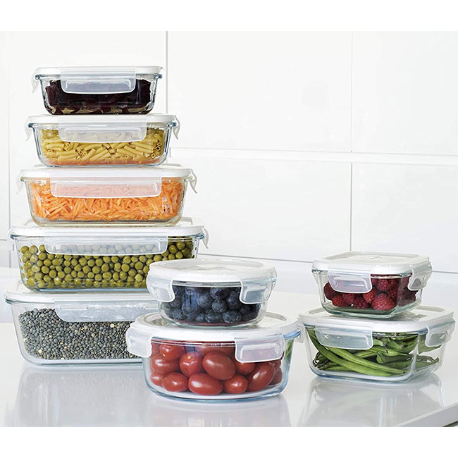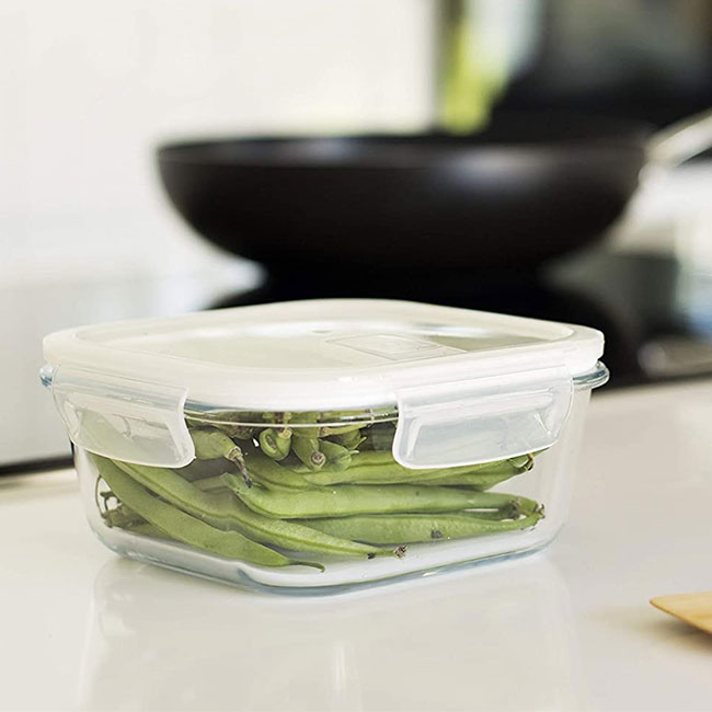 Кутиите са съвместими с микровълнова печка, фурна (без капак), хладилник и фризер. Стъкленият съд може да се мие в съдомиялна машина, за капака препоръчваме ръчно миене.