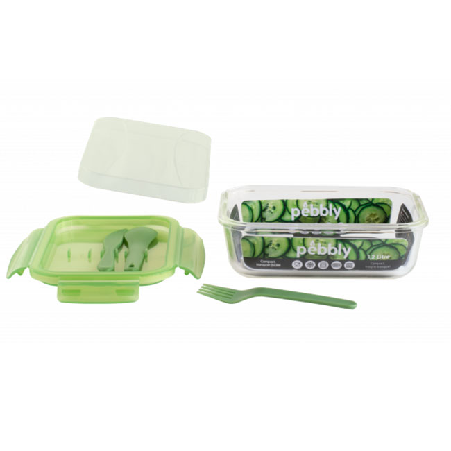 PEBBLY Стъклена кутия за храна с прибори - 1,2 л.