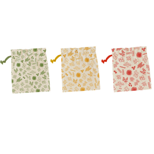 - Комплект от 3 многократни памучни торбички за пазаруване