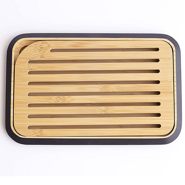 Дъската от естествен бамбук е идеална за рязане на хляб преди или по време на сервиране на масата. Практична, има резервоар за трохи и повърхността ѝ не се надрасква лесно. Прорезът в единия ъгъл улеснява повдигането на решетката, събирането на трохите и почистването на дъската.