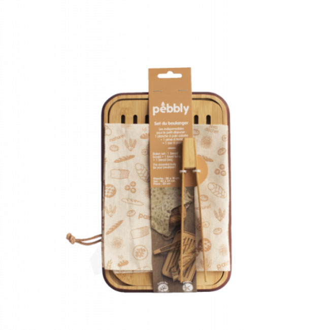 PEBBLY Комплект за хляб - дъска, щипка и торбичка за съхранение