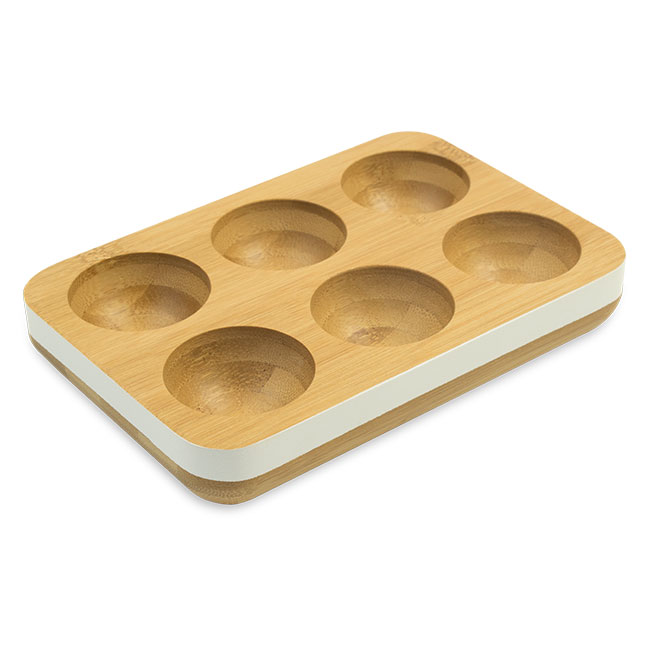 PEBBLY Бамбукова поставка за 6 яйца с бял кант