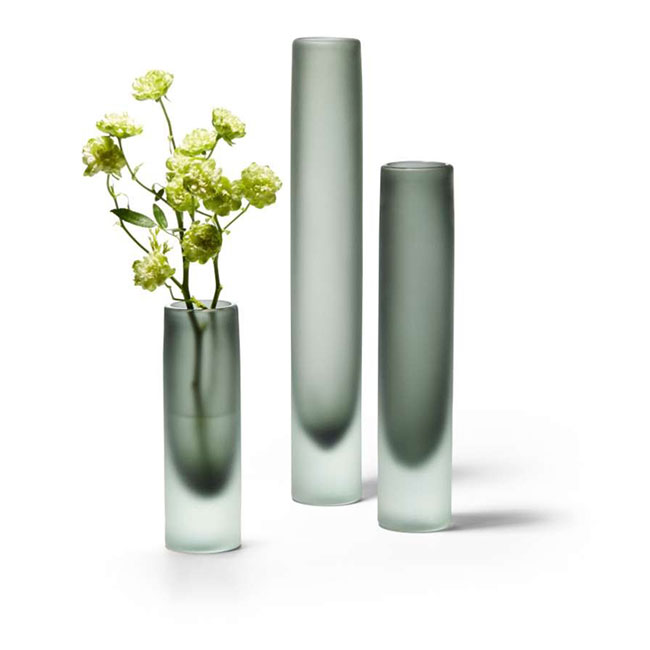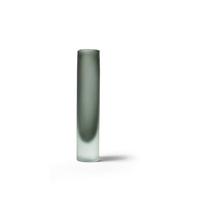 Стъклена ваза “NOBIS“ се предлага в три варианта ( S,M и L) с височини 20-30-40 см. Изработени са от ръчно издухано сатенирано стъкло в модерен сиво-зелен оттенък. Тяхната тънка, удължена форма и уникално тежко усещане са идеални за отделни цветя, клони или листа.