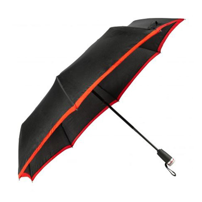 Сгъваемият чадър Gear се отличава със своята модерна визия. Дръжката му има гумено покритие с контрастен цветен пръстен и подписан назъбен връх, в съответствие с останалата част от колекцията Gear. Платното е двуцветно с ярко оцветени кантове за отличителен стил. Този чадър е лек, доставя се в подписан джоб с цип и отварянето / затварянето е автоматично за оптимален комфорт.