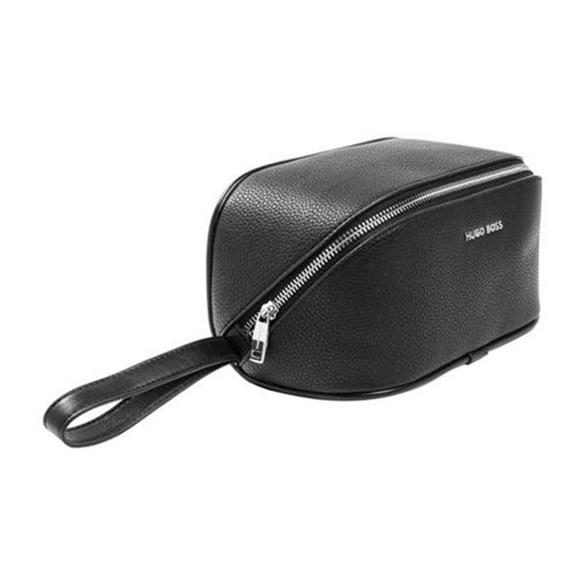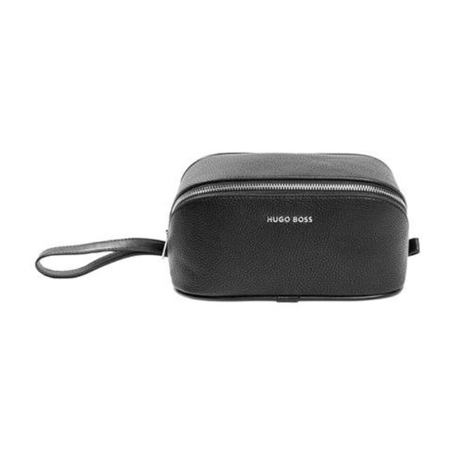 Козметичната чанта Storyline Black е изработена от висококачествена черна кожа със зърнеста структура. Разпознаваемото хромирано лого Hugo Boss е разположено в предната ѝ страна. Всеки би оценил високото ѝ ниво на изработка.