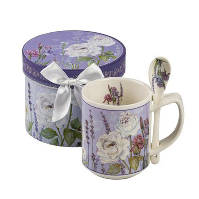 - Луксозен комплект от кутия с чаша и допълнение от малка лъжичка – две нежни съчетания от порцелан.