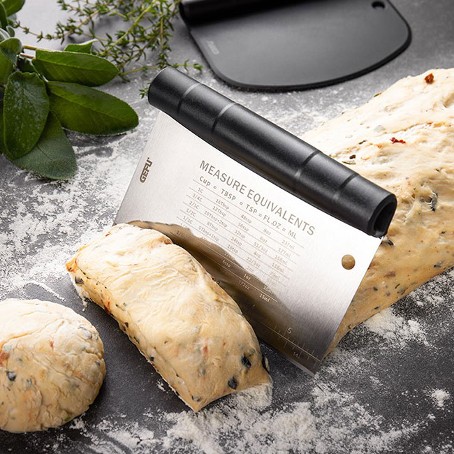 • Нож за тесто с измервателна скала ( см / инч) и таблица за преобразуване (Cup = TBSP = TSP = FL.OZ = ML)