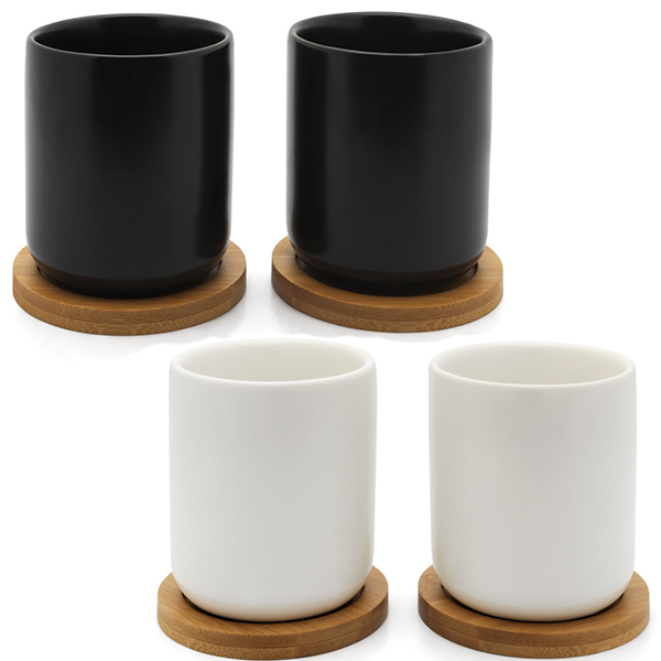 Комплект от две керамични чаши за чай. Идеално се съчетават с комплект за чай Umea. Освен това комплектът съдържа две бамбукови подложки, за да се избегне поставянето на горещи чаши директно върху масата. Предлага се в бяло и черно.
