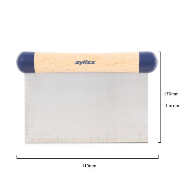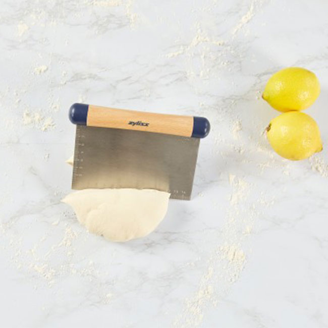 Практичен нож за тесто с острие от неръждаема стомана и дръжка от масивно буково дърво. Това е чудесен инструмент за порциониране и събиране на тесто, както и за повдигане на бисквитки от тава за бисквити, рязане на брауни и нарязване на твърди зеленчуци. Удобните маркировки за измерване ви позволяват да разделите равномерно тестото за печене.