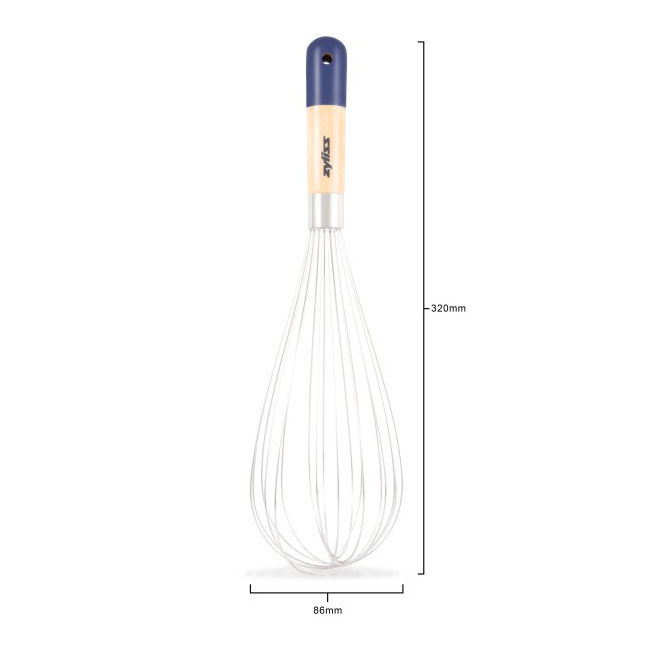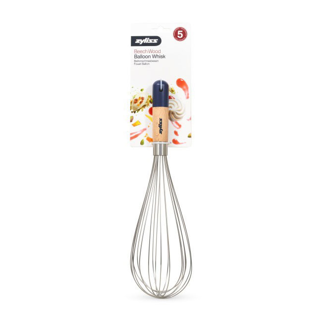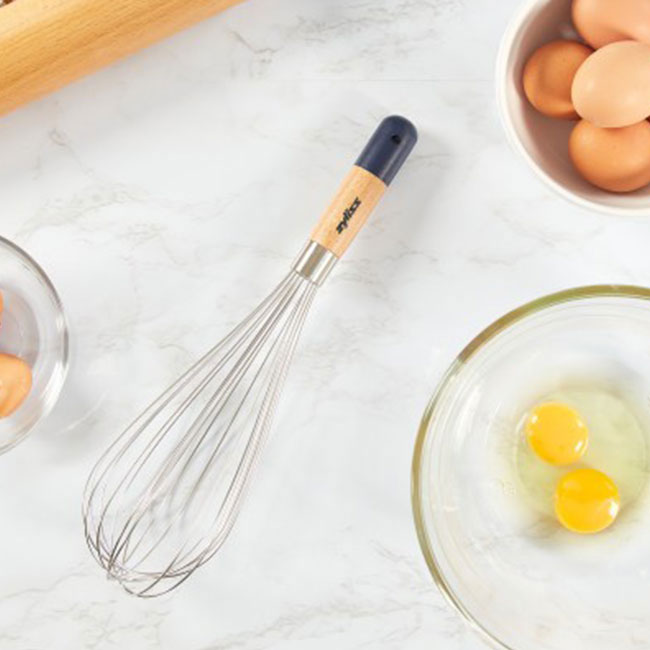 Бъркалката на Zyliss е изработена от издръжлива неръждаема стомана и буково дърво, което улеснява разбиването на белтъци, пухкави пандишпанови смеси и целувки.