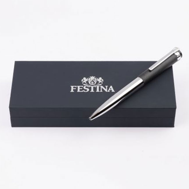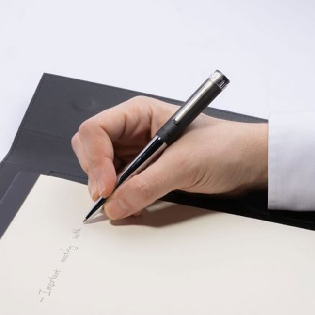 Луксозната метална химикалка от серията Prestige въплъщава изискана елегантност, благодарение на свойте деликатни очертания. Комбинира черно матово покритие с бляскави хромирани елементи. В красива подаръчна кутия.