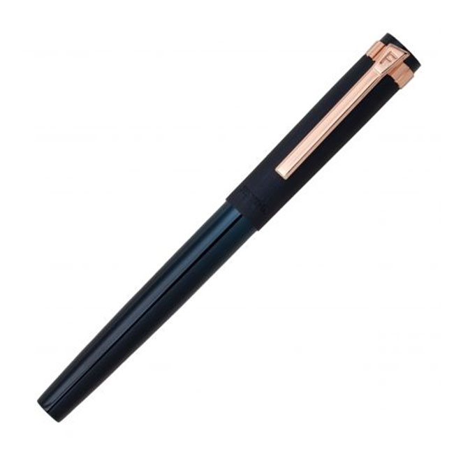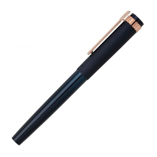 Луксозната метална писалка от серията Prestige въплъщава изискана елегантност, благодарение на своите деликатни очертания. Комбинира синьо матово покритие, съчетано с лъскави елементи от розово злато. В красива подаръчна кутия.