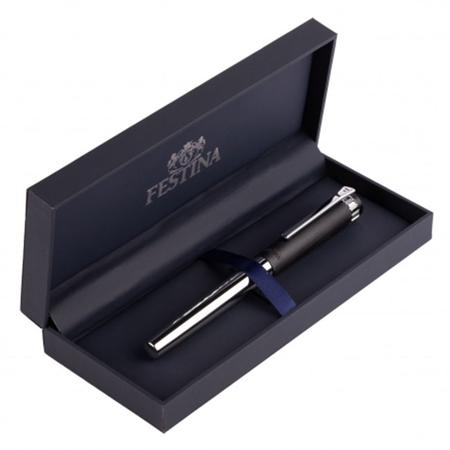 Луксозната метална писалка от серията Prestige въплъщава изискана елегантност, благодарение на свойте деликатни очертания. Комбинира черно матово покритие с бляскави хромирани елементи. В красива подаръчна кутия.