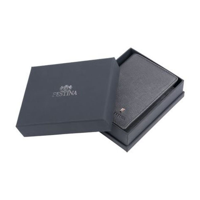 Линията кожени изделия "Chronobike" е изработена от внимателно подбрана естествена кожа, с текстура сафиано, против зацапване. Тази черна версия е украсена с луксозен хромиран подпис за елегантен външен вид. Емблематичният подпис, логото с трапецовидна форма, е намален до възможно най-малкия мащаб, за да придаде на линията луксозно завършен докосване, като същевременно позволява оптимално използване. Той е подчертан от красиво релефно лого на Festina. Този портфейл е компактен и изключително практичен, с множество слотове за карти и две отделения за банкноти в горната част. Всички артикули на Festina са оборудвани с RFID защитна подплата.