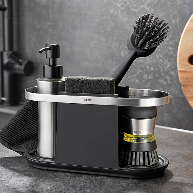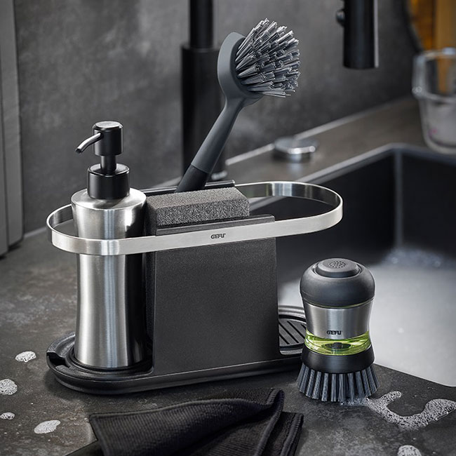 Стилно проектиран и изключително практичен: елегантният органайзер SMARTLINE вече осигурява ред във всяка кухня. Гъба, четка, кърпа за съдове и дозатор за миещ препарат стоят подредени и са винаги готови за употреба. С хигиенична тава за отцеждане, за да предпазва плота от намокряне.