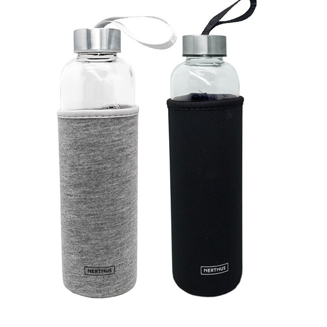 Nerthus Стъклена бутилка с неопренов протектор - 600 мл. - цвят сив