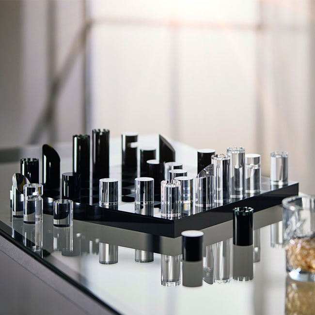 Шах за победители - 32 фигури от прозрачен, ръчно полиран акрил. Капакът на кутията, служи и като дъска за шах. YAP може да бъде прекрасен подарък за приятел или бизнес партньор.