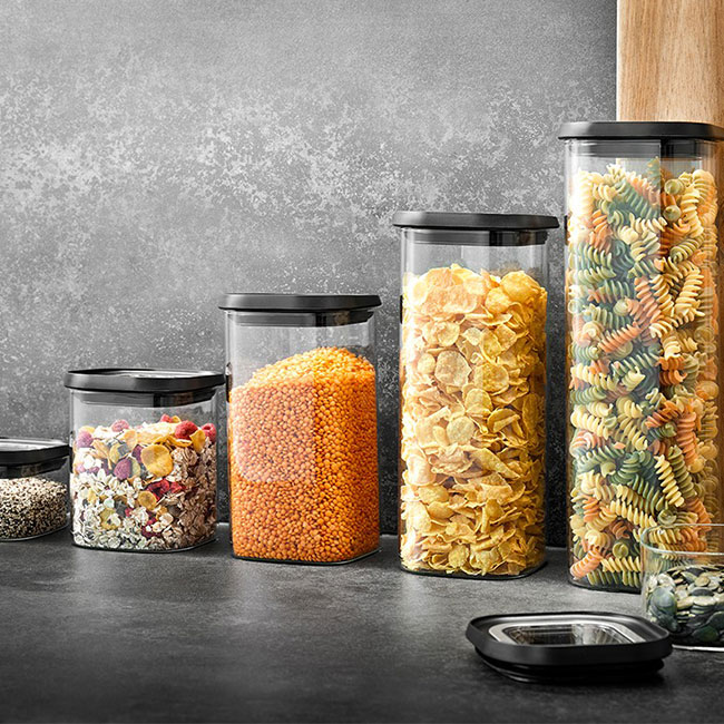 Елегантни и практични едновременно, стъклените канистери за съхранение на GEFU запазват храната свежа за по-дълго време, могат лесно да се подреждат и освен това изглеждат страхотно. Капаците се затварят херметически и запазват аромата – от ароматни билки и подправки, през сухи зърнени и бобови храни, до паста – всичко може да съхранява удобно и добре затворено в тях.