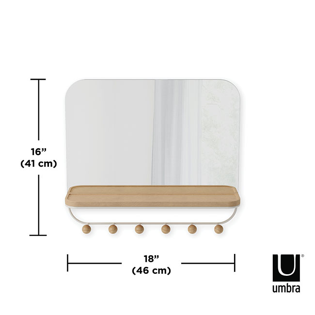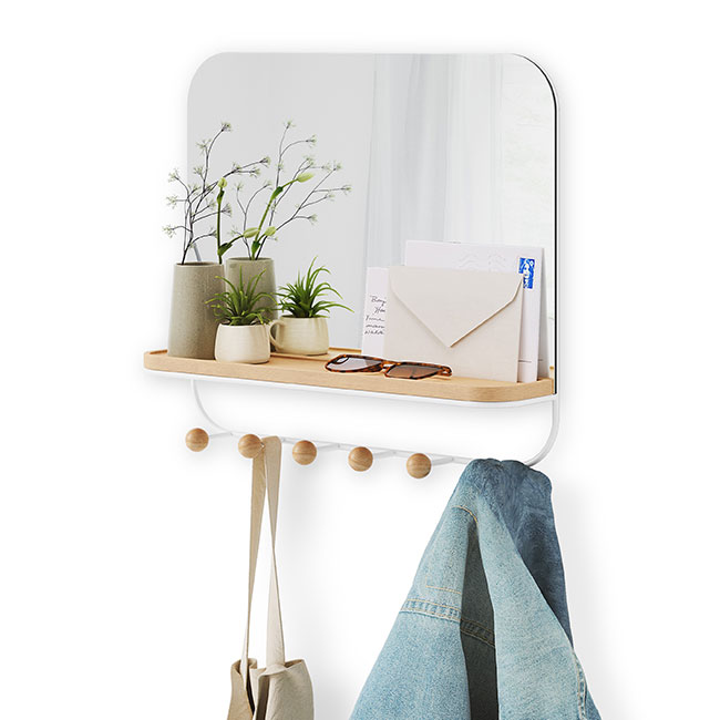 UMBRA Огледало за стенен монтаж с 6 бр. закачалки “ESTIQUE“ - цвят бял