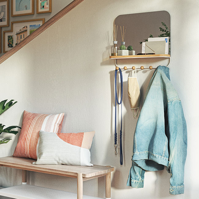 Огледало с интегрирано съхранение, Estique разполага с шест дървени куки за защита на предмети, като същевременно добавя декоративна нотка. Неговата интегрирана табла е идеална за съхранение на вашия телефон, портфейл, ключове, свещи и други, докато огледалото му осигурява функционалност за ретуширане, преди да излезете през вратата. Неговата модерна комбинация от дърво и метал го прави декоративно решение за съхранение, което ще изглежда страхотно във всеки дом или офис пространство.