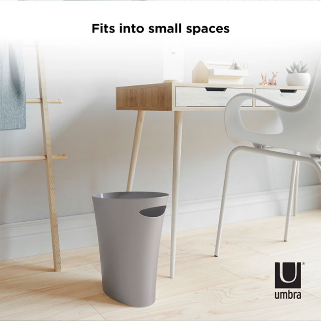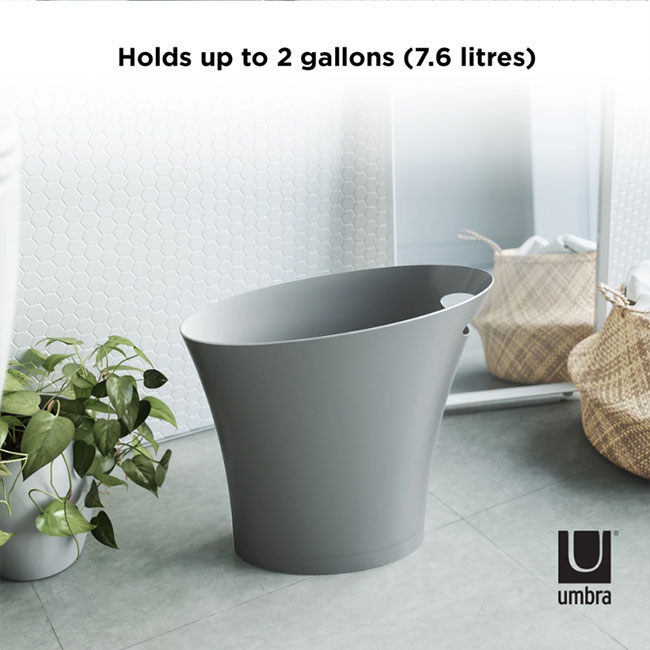 Umbra Skinny е малък и стилен кош за боклук с вместимост 7,5 л, подходящ за баня и за всички малки пространства във вашия дом или офис. Интегрираната му дръжка прави пренасянето и почистването му изключително лесно и удобно.
