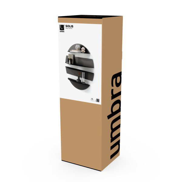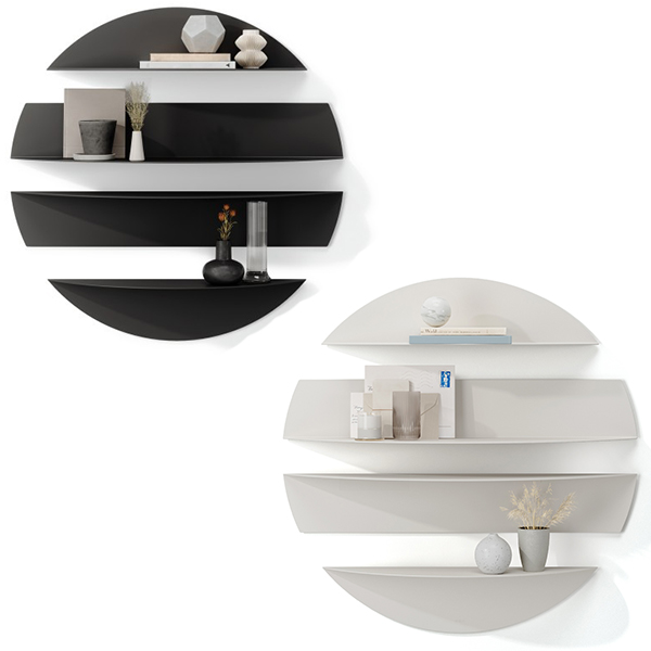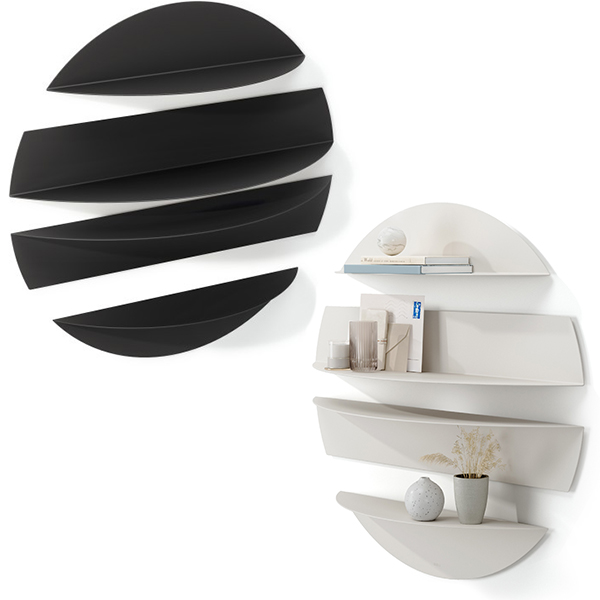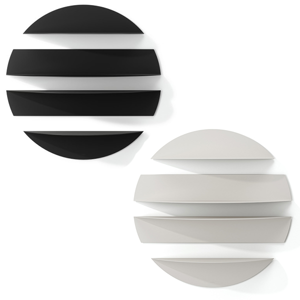 Комплект от четири уникални рафта за стена, изработени от огъната стомана, които могат да се използват за привличащ вниманието стенен дисплей. Състои се от два малки и два големи рафта, които могат да се монтират както заедно, така и поотделно. Основата на всеки рафт може да се монтира надолу или нагоре, според личните Ви предпочитания и дизайнерски усет. Използвайте SOLIS за подреждане и съхранение на книги, декорации, рамки за снимки и др. Товароносимост на малките рафтове – 4,5 кг, на големите – 6,8 кг.