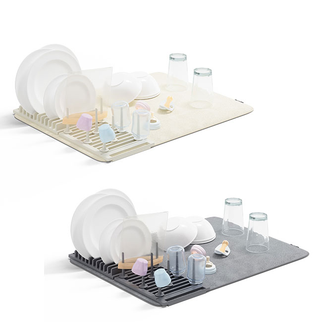 Перфектната комбинация от форма и функция – микрофибърната подложка на UDry абсорбира вода от съдове, като в същото време предпазва плота ви от надраскване и натрупване на вода. Подложката може да се пере в пералня.