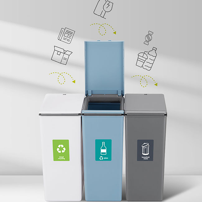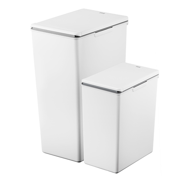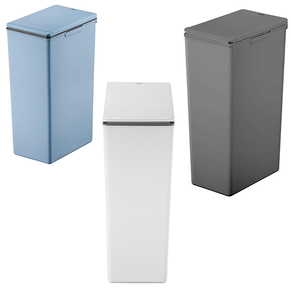 Благодарение на тесния си дизайн, кошът може да бъде поставен плътно до стената. Съдържа държач за торба за отпадъци и е без вътрешна кофа, оставяйки изключително голямо пространство за отпадъците. Рамката на държача на торбата за отпадъци я държи спретнато на място и далеч от погледа. Няколко коша за отпадъци могат лесно да бъдат свързани заедно с конектора, което ги прави идеални за разделяне на отпадъци.