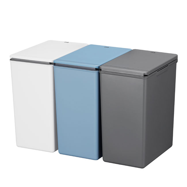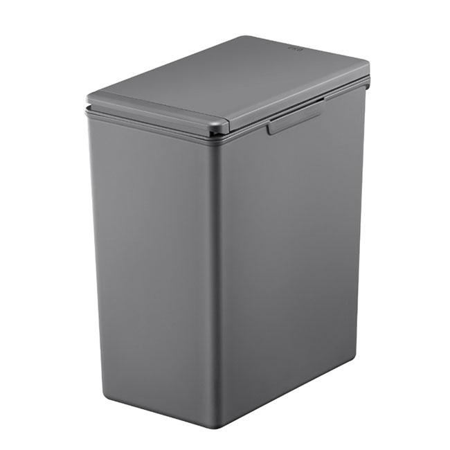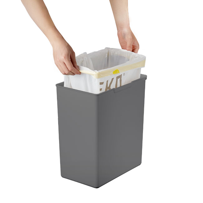 Благодарение на тесния си дизайн, кошът може да бъде поставен плътно до стената. Съдържа държач за торба за отпадъци и е без вътрешна кофа, оставяйки изключително голямо пространство за отпадъците. Рамката на държача на торбата за отпадъци я държи спретнато на място и далеч от погледа. Няколко коша за отпадъци могат лесно да бъдат свързани заедно с конектора, което ги прави идеални за разделяне на отпадъци.