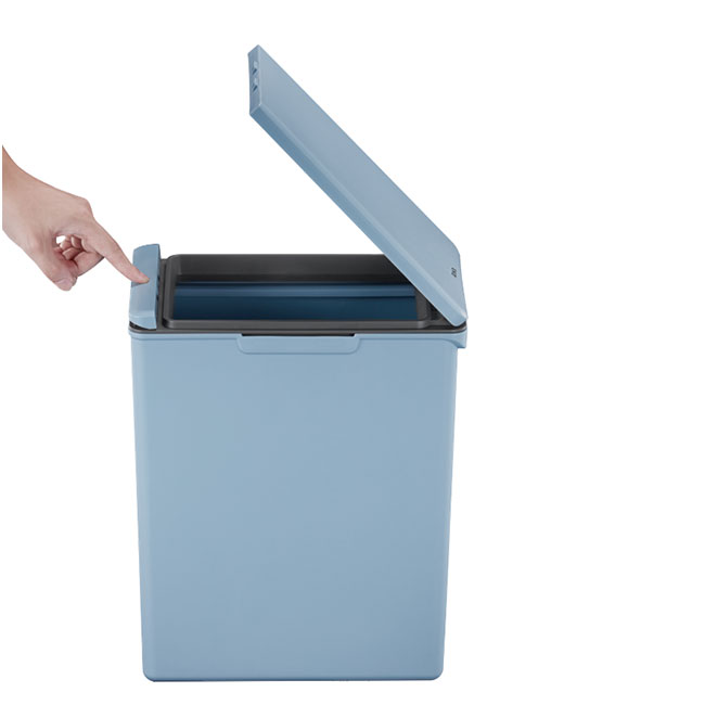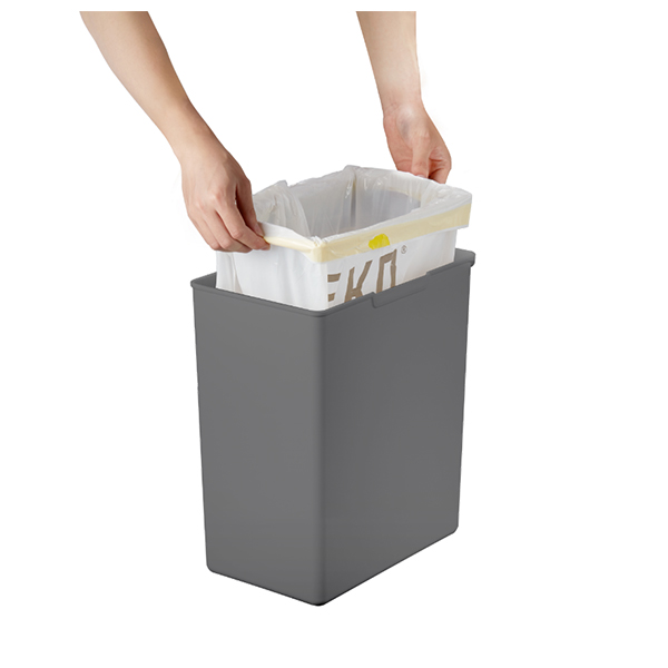 Благодарение на тесния си дизайн, кошът може да бъде поставен плътно до стената. Съдържа държач за торба за отпадъци и е без вътрешна кофа, оставяйки изключително голямо пространство за отпадъците. Рамката на държача на торбата за отпадъци я държи спретнато на място и далеч от погледа. Няколко коша за отпадъци могат лесно да бъдат свързани заедно с конектора, което ги прави идеални за разделяне на отпадъци.