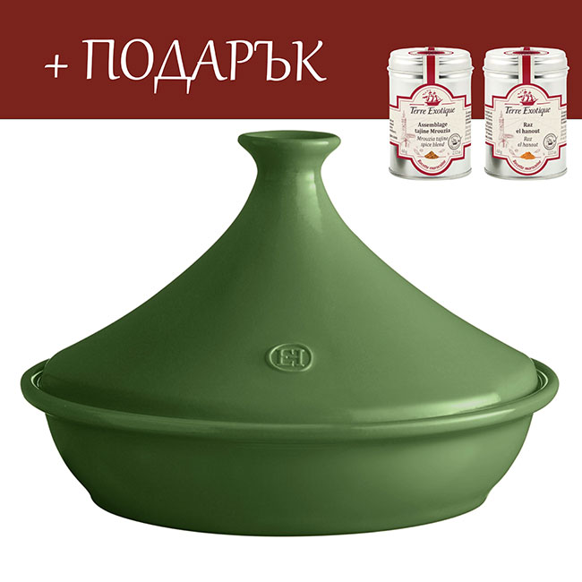 EMILE HENRY Керамичен тажин с комплект подправки - Ø 32 см - цвят зелен