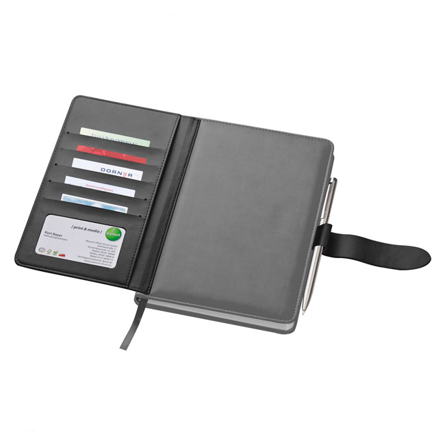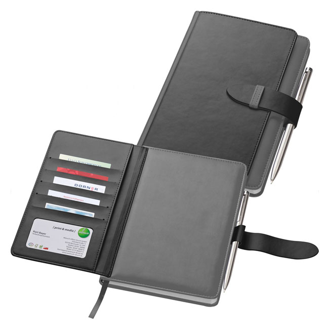 • Луксозен бележник-органайзер. Допълнителна корица с отделение за визитки и карти.