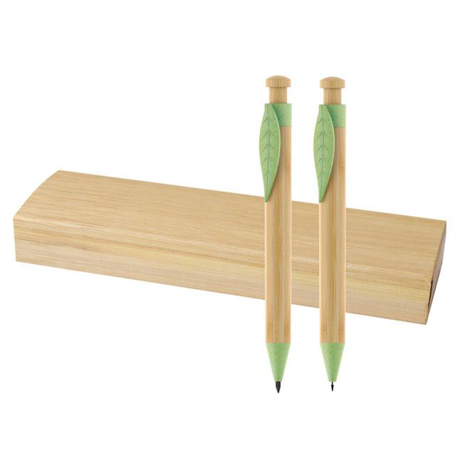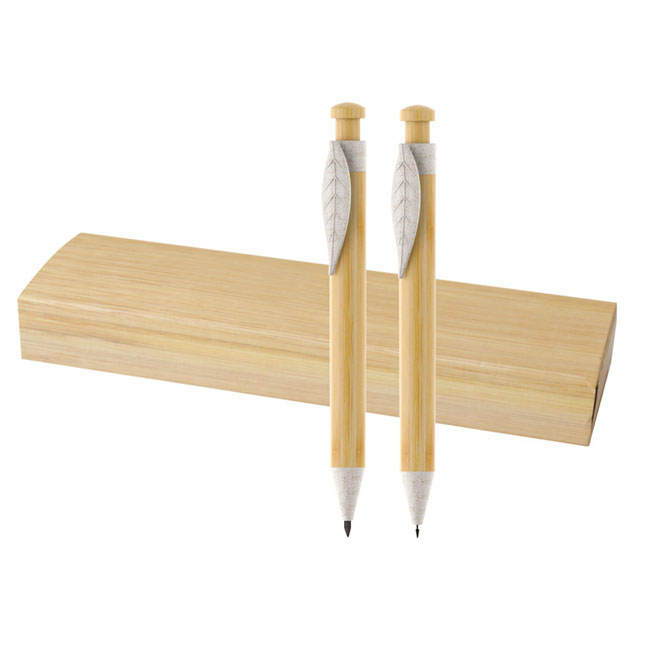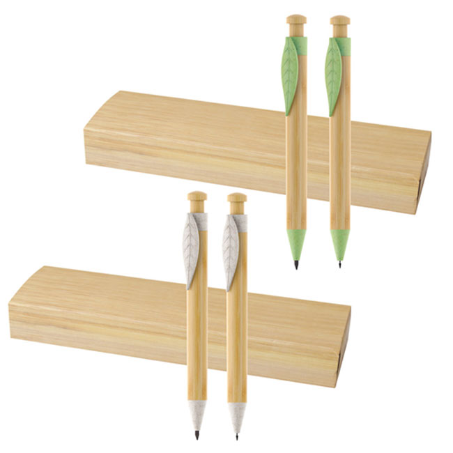 Изберете еко комплект от рекламни химикалка и писалка. Оставете своя индивидуален отпечатък и се възползвайте от възможността за персонализиране на продуктите.