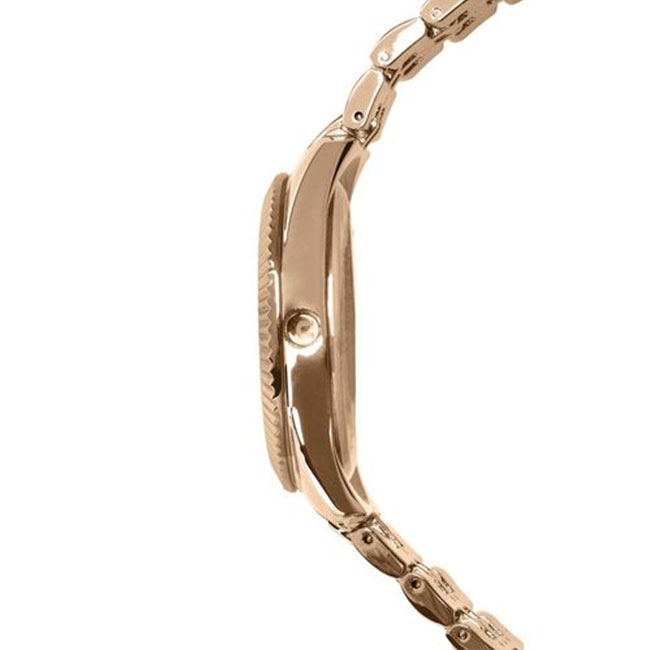 • Луксозен ръчен часовник с удобна каишка в розово злато. Закопчаването е с катарама,корпус от антиалергична неръждаема стомана, минерално стъкло, устойчиво на надрасквания, 3АТМ водоустойчив и японски механизъм MIYOTA.