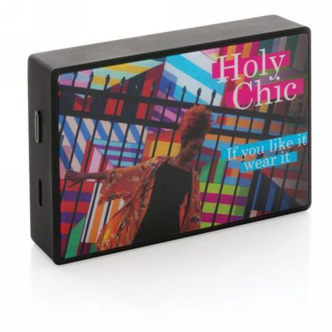 Модерен и луксозен 3W безжичен високоговорител със закалено стъкло. Високоговорителят използва BlueTooth 5.0 за гладка връзка. Батерията от 500 mAh предлага време за музика до 5 часа. Презареждането става за 1,5 часа. Работно разстояние до 10 метра. ABS материал с решетка от плат и закалено стъкло. Включва TPE micro usb кабел за презареждане.