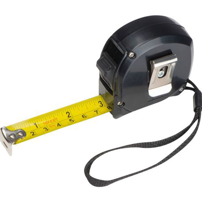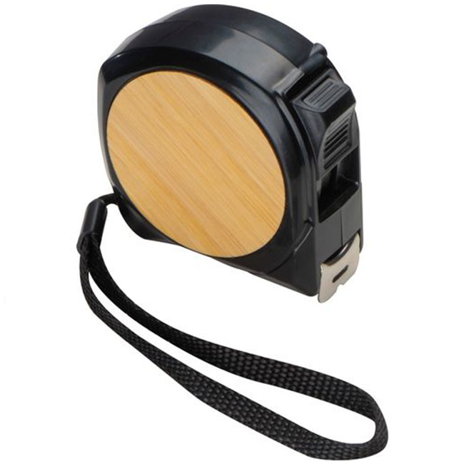 Ролетка с дължина 5 м, здрав пластмасов корпус с бамбукова част, бутон за спиране и каишка за китка.