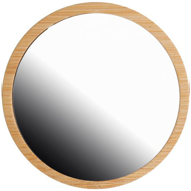 Удобно кръгло джобно огледало от бамбук. Вашето лого може да се гравира на гърба