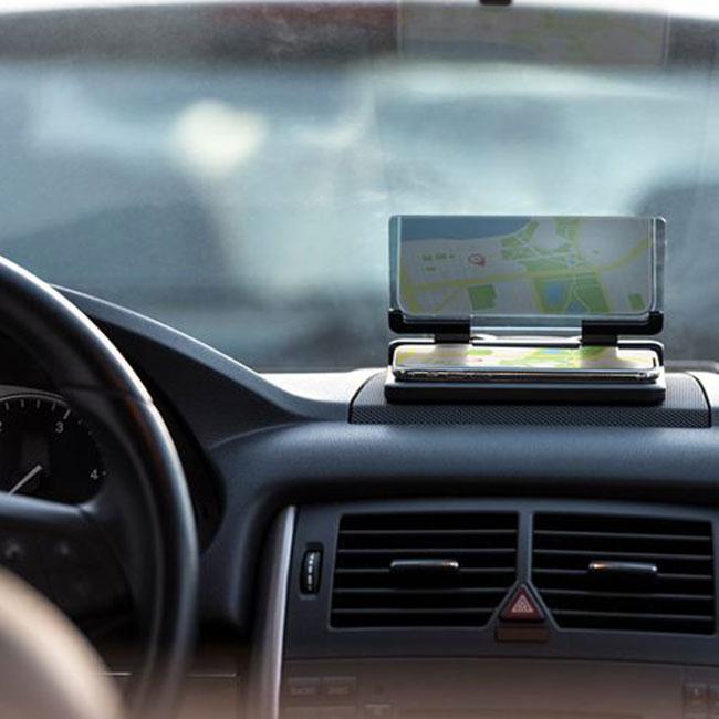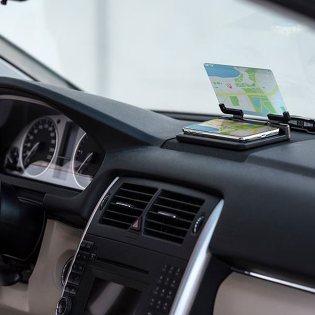 • Мобилен държач за табло от пластмаса с огледало за преден дисплей и залепваща повърхност.