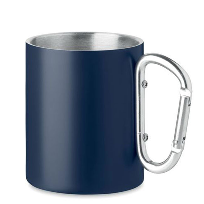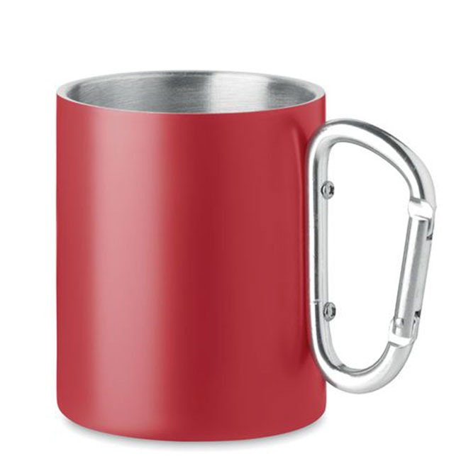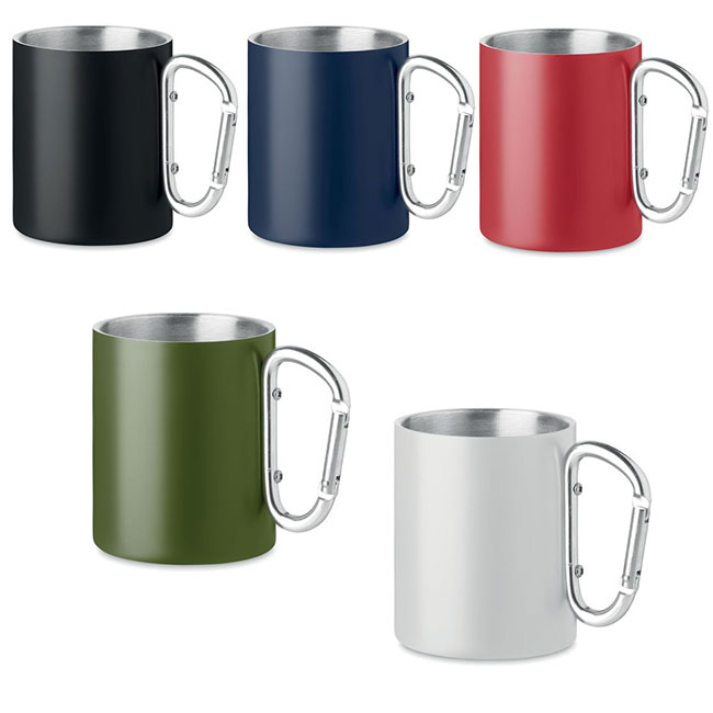 • Двустенна чаша от неръждаема стомана с дръжка карабинер. Поджодяща за лазерно гравиране.