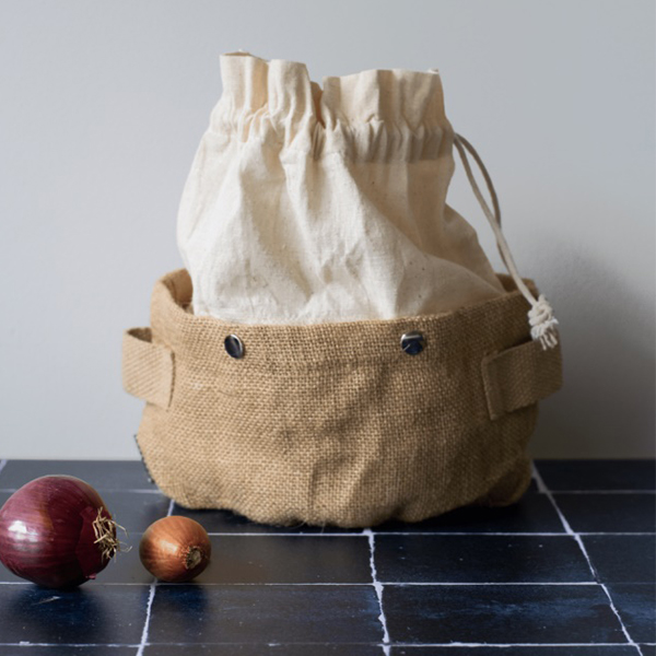 Използвайте многократна торбичка, когато купувате зеленчуци. Когато се приберете у дома, поставете чантата в кошницата от юта и я затворете.
