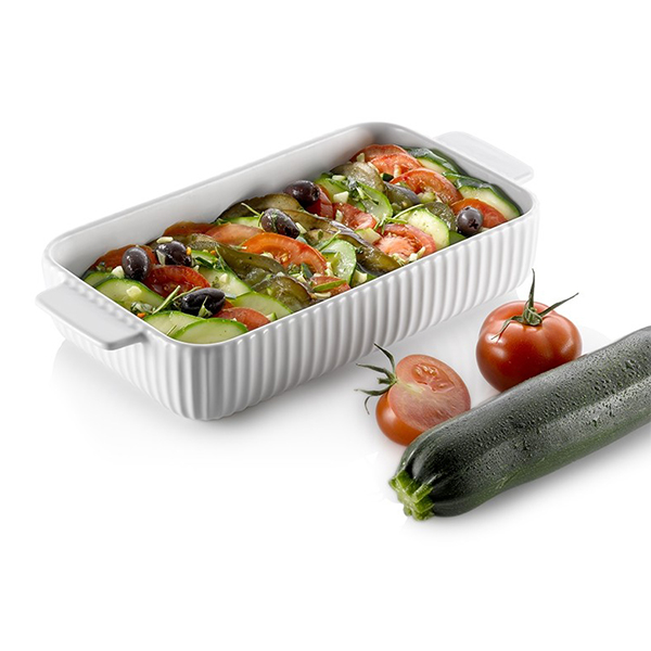 Пригответе вкусни ястия и ги поднесете с нашата красива тава за печене и сервиране. Благодарение на устойчивостта на топлина до 280°C, тавата е идеална за сервиране на ястия, приготвени на фурна, като например лазаня. Дръжките от двете страни улесняват и подпомагат боравенето с тавата. Непрекъснатото външно оребряване придава на съда специален вид и привлича вниманието на всяка маса за хранене.