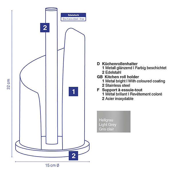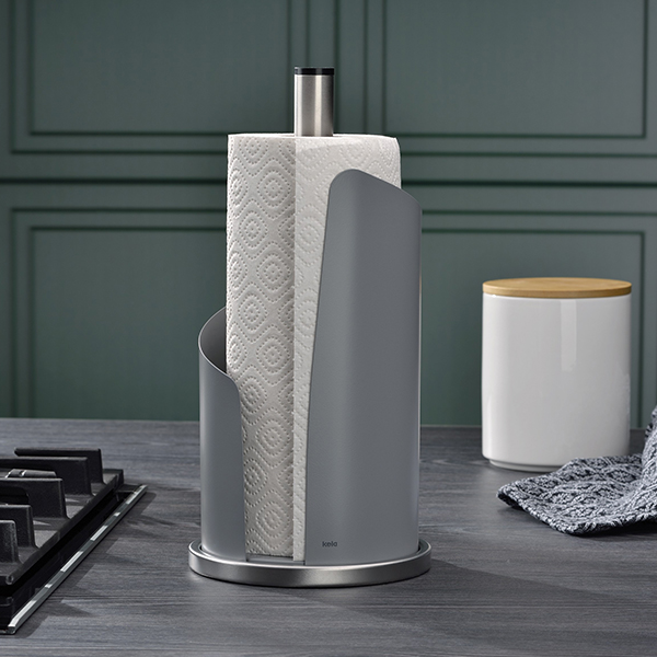 Стойката за кухненски ролка Stella ще се превърне във важен, практичен и модерен кухненски аксесоар за Вас. Благодарение на широкия отвор отпред винаги можете бързо да стигнете до следващата кухненска кърпа. Стойката се предлага в цветове бял, черен и светло сив.