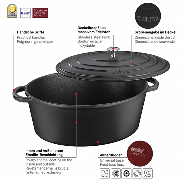 KELA Чугунена овална тенджера с капак “Calido“ - 36х29 см. - черна