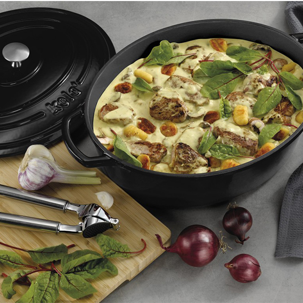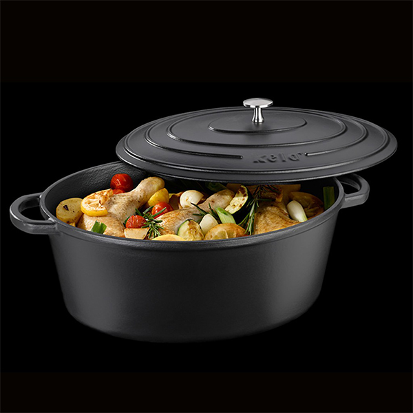 Чугунената овална тенджера Calido е перфектна за ястия, които трябва да се готвят по-дълго време. Доброто задържане на топлината означава, че е необходима по-малко енергия. Освен това изглежда добре на масата и гарантира, че ястието, което сервирате, ще остане топло за по-дълго.