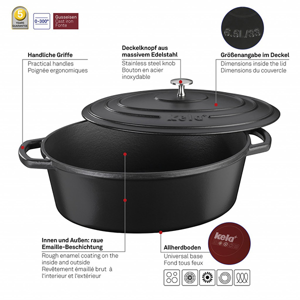 KELA Чугунена овална тенджера с капак “Calido“ - 33х26см. - черна