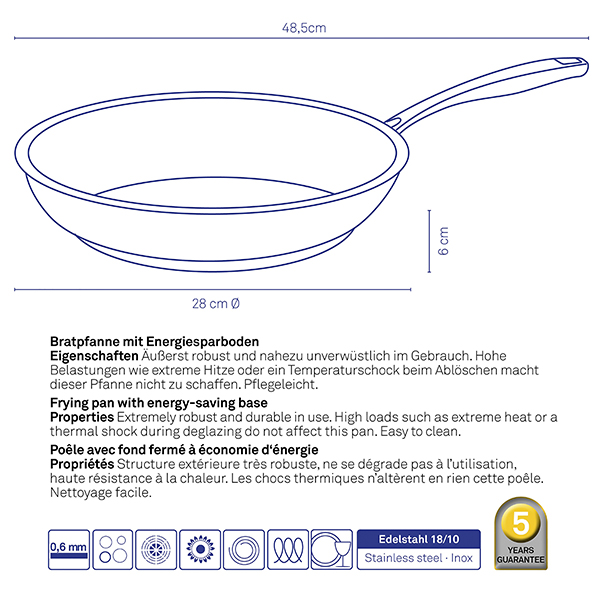 • Енергоспестяващото многослойно дъно е обработено с Impact-Bonding-Technologie. Това позволява перфектно сцепление, максимална устойчивост на големи температурни амплитуди и оптимално разпределение на топлината.