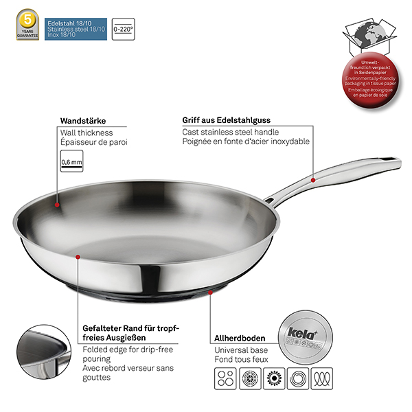 Серията Flavoria от KELA е наистина открояваща се. Още от пръв поглед се вижда висококачествената изработка. Тази серия за готвене е полирана отвън и фино матирана отвътре.