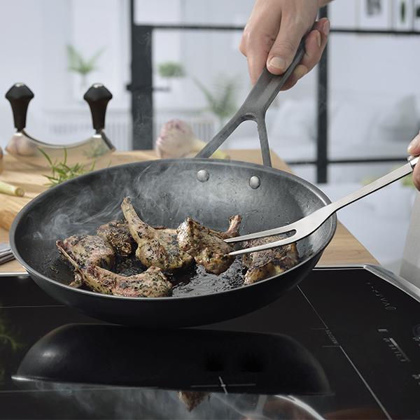 - Благодарение на феромагнитното дъно, тиганът може да се използва на всички видове котлони, включително индукционни.