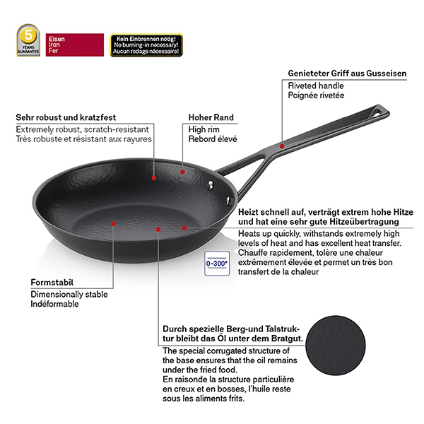 Готвенето в тиган Rhino е просто забавление. Насладете се на този железен тиган сега и очаквайте следните характеристики на продукта: