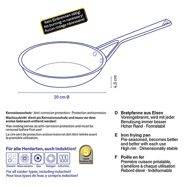 Не е нужно да сезонирате (омаслявате) тигана! Тиганът вече е предварително омаслен! Цветът на тигана идва от предварителната обработка. Тиганът не е подходящ за съдомиялна машина!